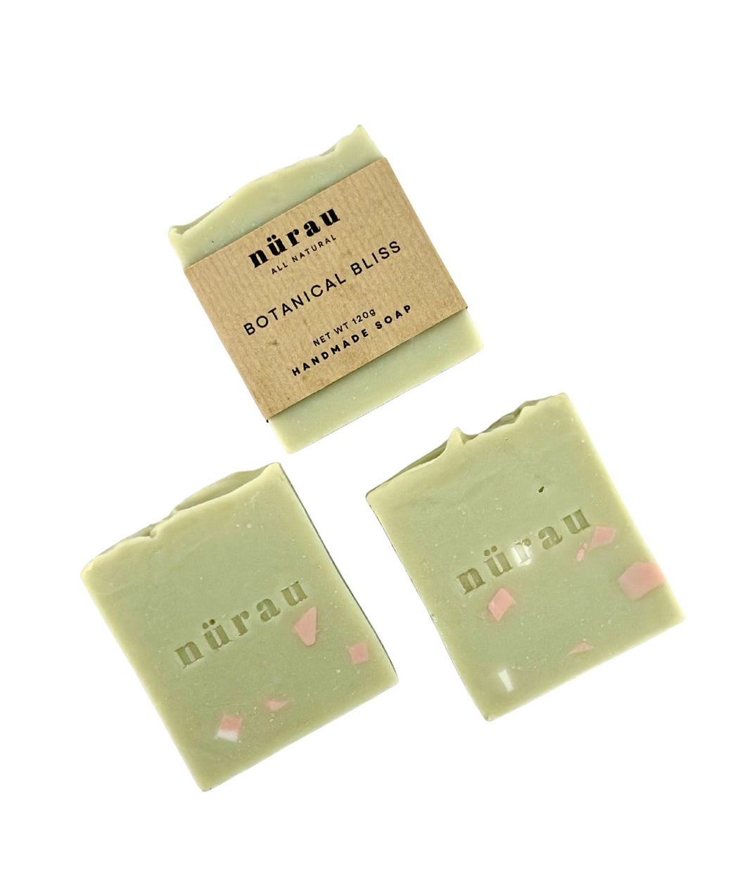 Indulge in the calming, floral aroma of our Botanical Bliss Handmade Soap, designed to refresh and nourish your skin. Crafted with a luxurious blend of nourishing butters and organic cold-pressed oils., this soap provides deep hydration while leaving your skin feeling soft, smooth, and nourished.