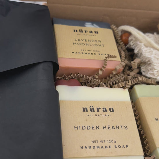 To enhance your bathing ritual, the gift box includes a bamboo soap dish and a soap saver bag, ensuring longevity and a luxurious lather. Elegantly packaged with tissue and shredded paper, this set makes for a thoughtful and eco-friendly Christmas present.