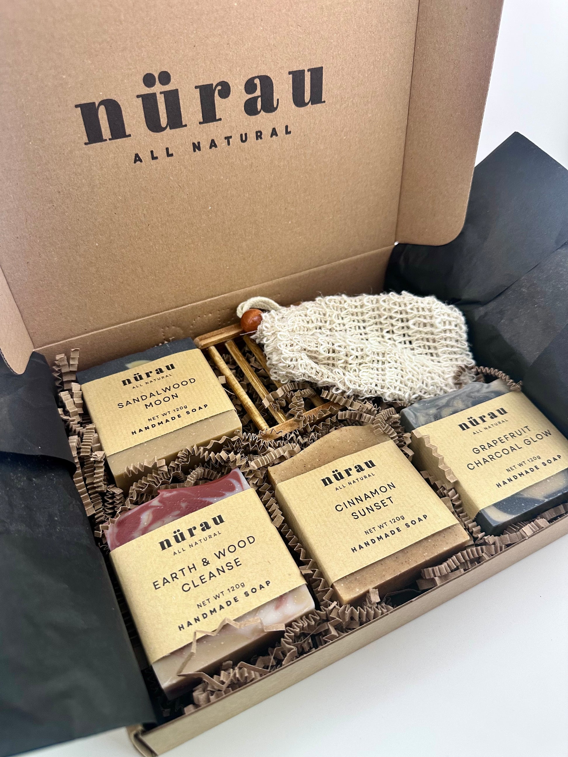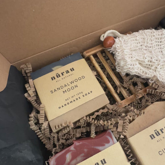 To elevate the grooming experience, the gift box includes a bamboo soap dish and a soap saver bag, prolonging the life of each soap while creating a luxurious lather. Packaged with refined tissue and shredded paper, this set is a thoughtful, stylish, and eco-conscious gift for him this Christmas.
